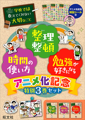 本セットは、アニメ化された「整理整頓」「時間の使い方」「勉強が好きになる」の原作書籍3冊がセットになった商品です。