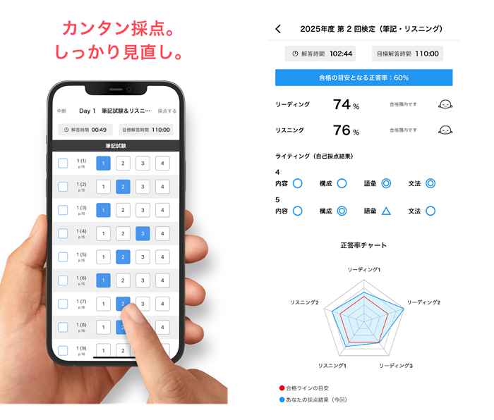 2025年度第2回・第1回、2024年度第3回・第2回・第1回、2023年度第3回の試験を収録。これ1冊で筆記・リスニング・面接の傾向がわかります。また、旺文社公式アプリ「学びの友」での自動採点や「英語の友」での音声再生にも対応しています(利用可能期間:2028年2月29日まで)。