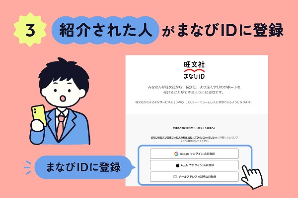 本キャンペーンは、まなびID会員(紹介者)と、その紹介で新規登録をした友人(紹介された人)のペアでご応募ください。