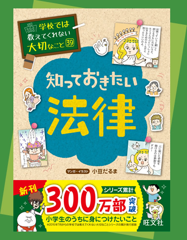 回答 temisさん ベストアンサーに選ばれた回答 日本には法律がおよそ1900個もあるわ! この本を読んでいろんな法律を勉強しよう! 全部覚えてとは言わないけれど、まずは身近な法律違反を学んで、 何をしたらダメかを知れば、注意して生活することができるわ。 君が学んだ法律は、せっかくなら友達にも教えてあげるといいんじゃない?