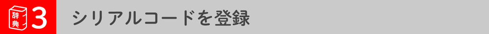 「シリアルコード管理画面」へ進み、「シリアルコード」入力エリアに、購入書籍の奥付隣ページに記載のシリアルコードを入力する。